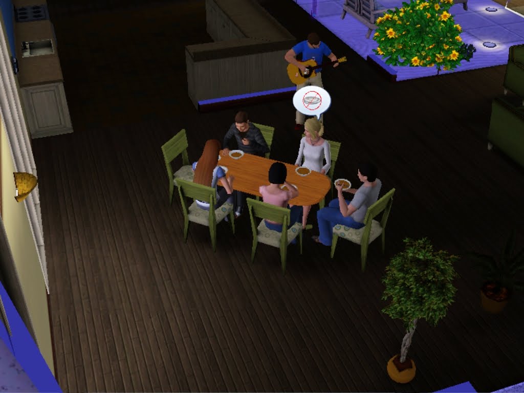 They seem to be getting along okay so far. Already Peter and Noah have decided they want to be best friends, and Tegan and Joe will talk to pretty much anyone. (I am not making this up, people upon whom the Sims are based. This is really what is happening in the game.) Erin and Tara keep more or less to themselves, but I think that's because Erin would rather stare blankly at walls with a question mark over her head (the price she pays for being Absent-Minded) than play chess.